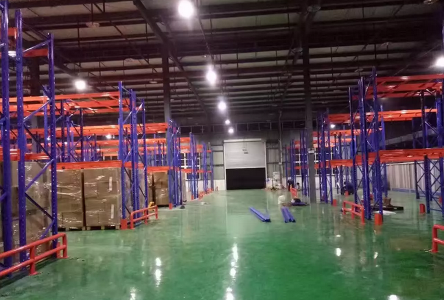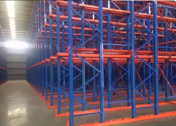 設計用于使用托盤存放同類型貨物。利用貨架導軌往里推送一次一個的托盤貨物,有很大的儲存密度空間提升利用率。一般適用于成本較高,倉庫租金貴的場地如冷凍倉庫等。