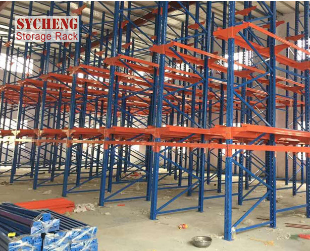 4貫通式貨架全插接組裝式結(jié)構(gòu),柱片為裝配式結(jié)構(gòu),靠墻區(qū)域的總深度一般最好控制在5個(gè)托盤(pán)深度以?xún)?nèi),中間區(qū)域可兩邊進(jìn)出的貨架總深度一般最好控制在10個(gè)托盤(pán)深度以?xún)?nèi),以提高叉車(chē)存取的效率和可靠性。