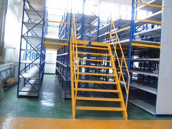 除此之外,下層是貨架形式,上層可以是平臺也可以是貨架的結構。底層貨架既可以存儲物料又是樓面的支撐。附件可配樓梯、扶手、提升機及照明系統(tǒng)等。不僅提升了存儲的空間,而且給生產運輸提供了方便。