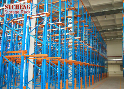 貫通式貨架系統的穩定性是所有種類貨架中較為薄弱的,為此貨架不宜過高,一般在10m以內,另外系統中還需加設拉固裝置。此種系統貨架排布密集,空間利用率極高,適于儲存少品種大批量同類型貨物,貨物可從同一側存入取出,也可從一側存入另一側取出.