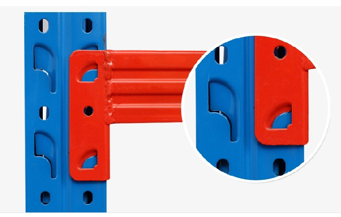 :每層承重載重通常在800kg以上,貨架長(zhǎng)度普通在3m以內(nèi),深度在1.2m以內(nèi),高度不限,重型橫梁式貨架由立柱、橫梁、橫撐、斜撐以及自鎖螺栓組裝而成,可以有效防止螺栓松動(dòng)后引發(fā)貨架失穩(wěn);橫梁采用特制的冷軋P型閉口梁;該結(jié)構(gòu)具有簡(jiǎn)單可靠、重量輕、承載力強(qiáng)、造價(jià)低的特點(diǎn);柱卡與立柱連接時(shí)配有特殊設(shè)計(jì)安全銷,可以確保橫梁在外力撞擊下不會(huì)脫落;層板采用國(guó)際上做的條狀層板,具有承載力強(qiáng)、耐磨損、更換簡(jiǎn)單、維修成本低廉的特點(diǎn)。